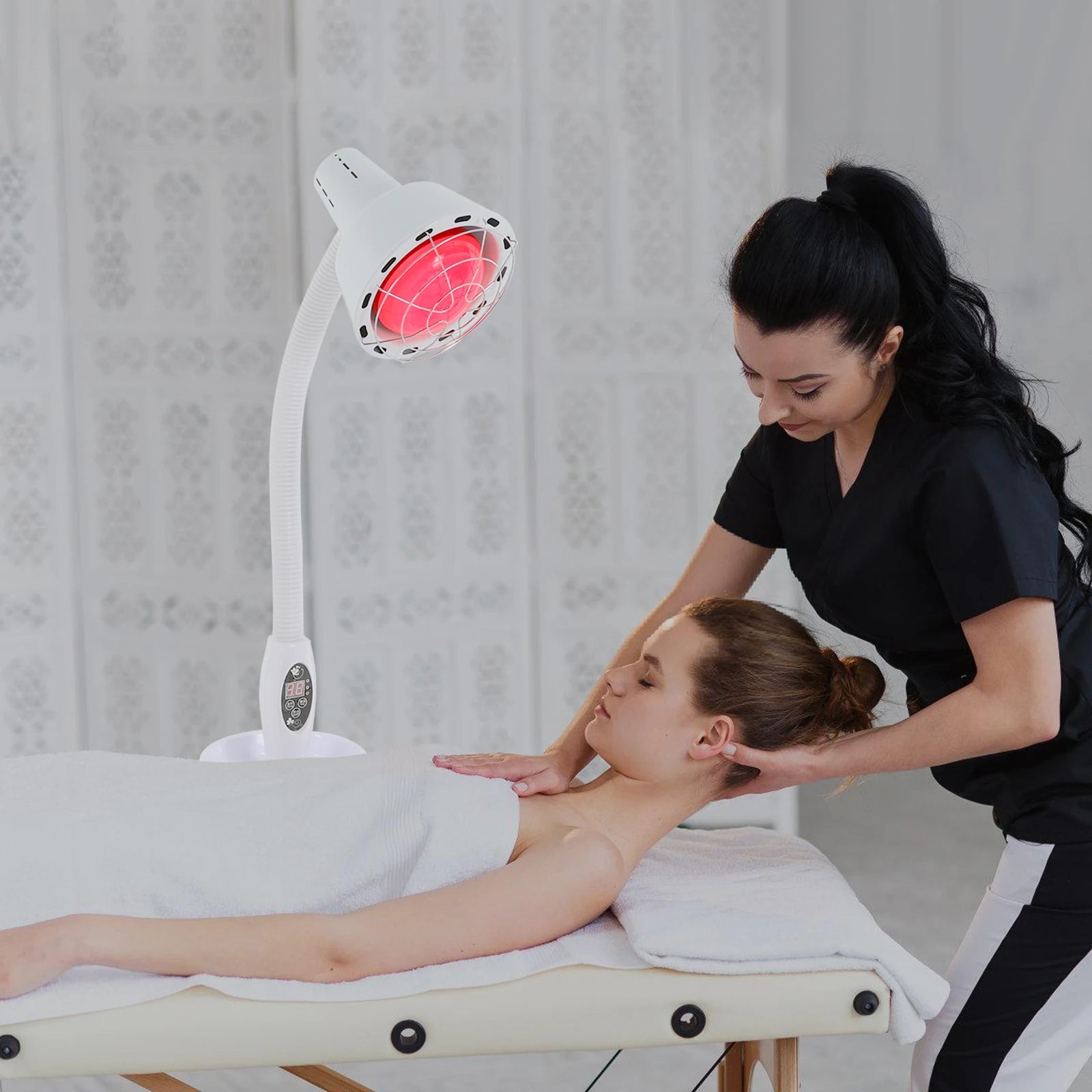 Diese ferngesteuerte Infrarot-Wärmetherapielampe bringt mühelose Eleganz und vielseitige Wärme in Ihr Zuhause oder Studio. Entwickelt für einen modernen Lebensstil, vereint sie Schönheit, Komfort und intuitive Funktionen in einer eleganten Lösung.